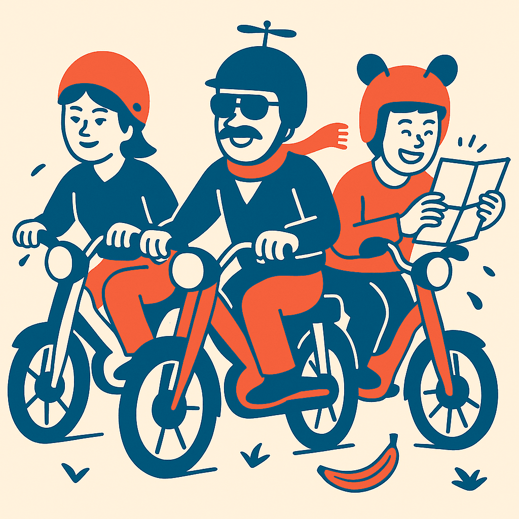 L’a-jean Greg et l’a-jean Ben n’en sont pas à leur coup d’essai. Copains depuis leurs études, ils ont notamment ensemble agité la vie associative de leur école (coucou Furystérie), créé un groupe de bikers parodique au nom à ne pas prononcer, et produit le trail burlesque “La Boularde”. S’ils sont assez différents, ils se retrouvent sur leur besoin de faire plaisir aux gens et sont convaincus que l'humour bien dosé est un levier de productivité ÉNORME pour l’entreprise.