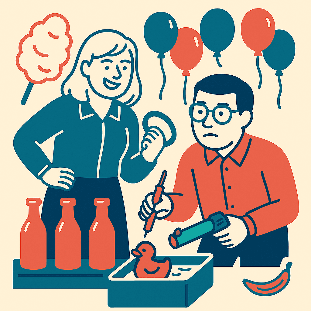 Notre recette pour passer un vrai bon moment, faire tomber les barrières et créer de la cohésion, c'est la subtile association du burlesque et du rocambolesque, le tout avec une grande personnalisation.